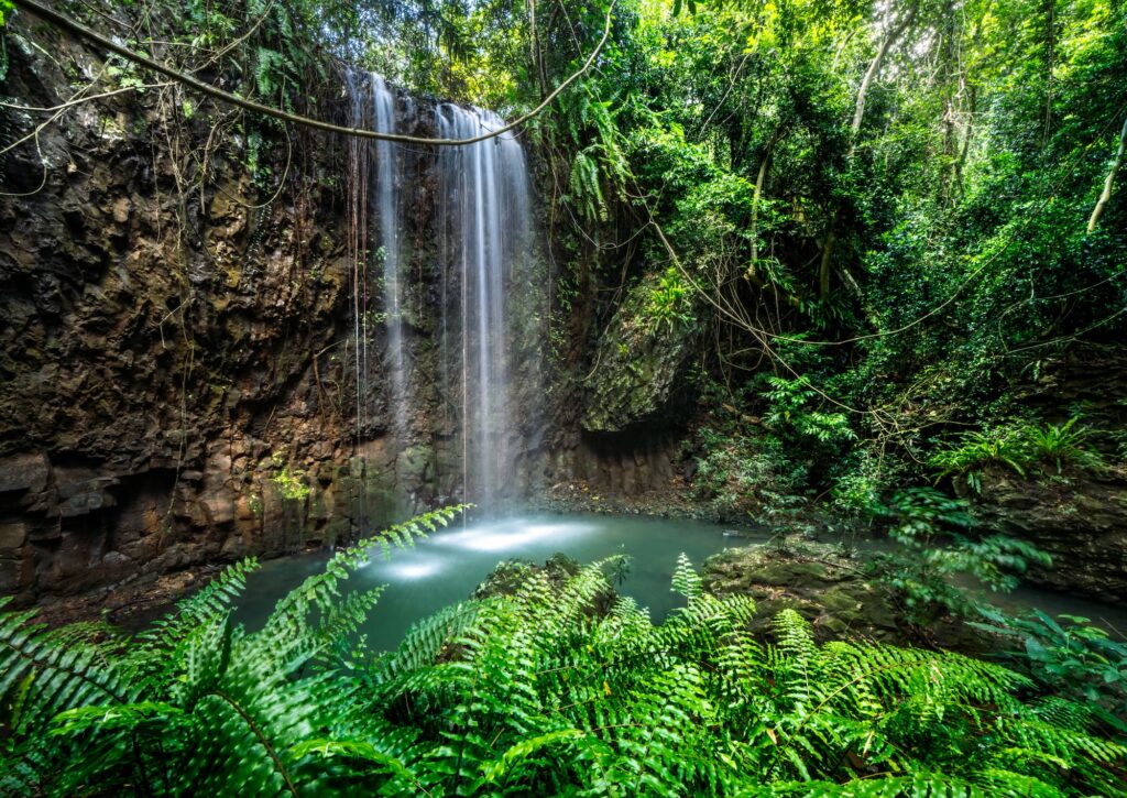 Recouverte d’une végétation dense, cette cascade est une pure merveille de la nature. Oasis secrète, elle se découvre après une courte marche à travers les sentiers feuillus de bambous géants et d’arbres imposants du domaine privé du même nom.